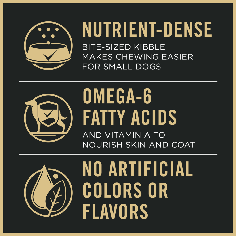 Outstanding Taste and Nutrition Specifically for Small Breed Dogs Small breed dogs have unique nutritional needs. Nourish them with the advanced, specialized nutrition of Pro Plan Small Breed Shredded Blend Beef & Rice formula. Featuring real, high-quality beef as the #1 ingredient plus crunchy kibble mixed with tender, shredded pieces, it’s the great taste and outstanding daily nutrition small dogs need to thrive.